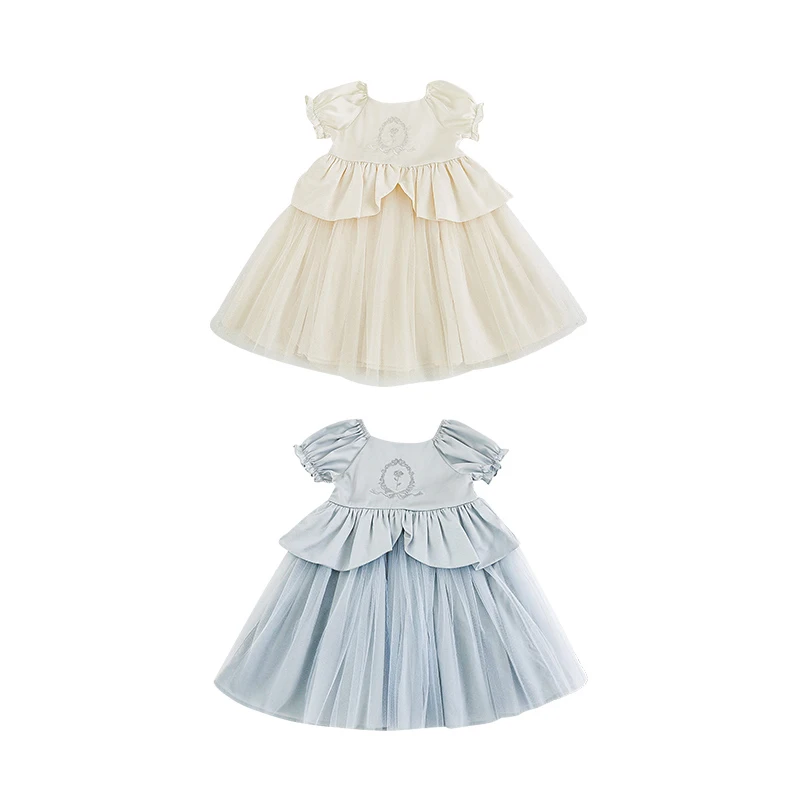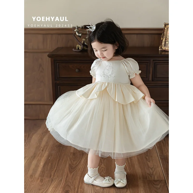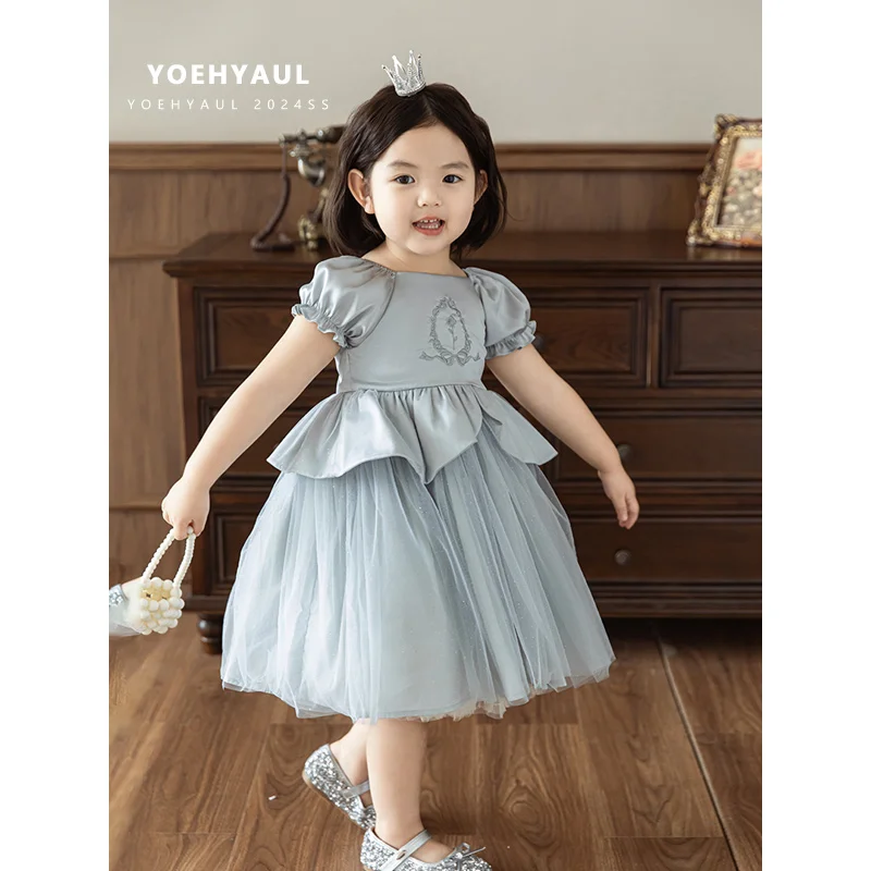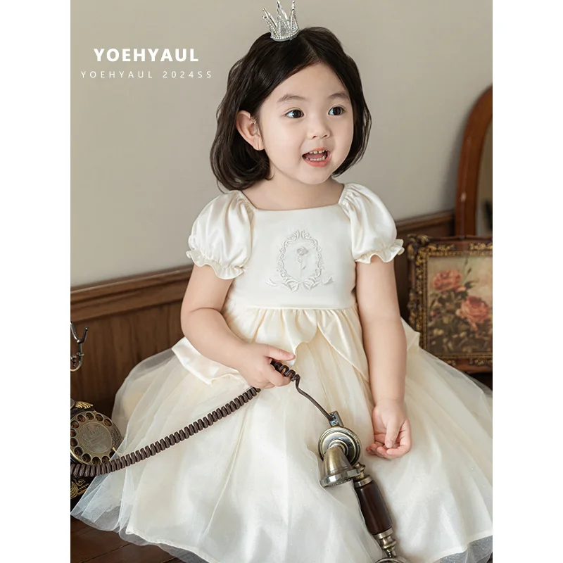 YOEHYAUL X4537 1-8T Factory Custom Logo Child Satin Party Frocks Designs Embroidery Princess Flower Girl Dresses Wedding Kids